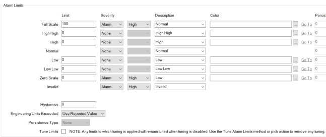 For information on the Tune Limits feature, see Define whether an Analog Point’s Limits can be Tuned in the Geo SCADA Expert Guide to Core Point Configuration.