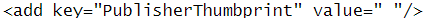 If you do not want to use a certificate, set the Publisher Thumbprint attribute to blank (see below):