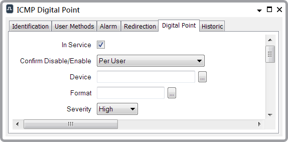 Use the fields at the top of the Digital Point tab to configure the basic properties of an ICMP Digital point: