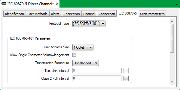 You configure the properties of each channel using the fields on the IEC 60870-5 Direct Channel Form.