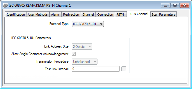 IEC 60870-5 KEMA PSTN channels support the IEC 60870-5-101 protocol. This protocol is used for serial communications.