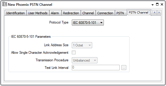IEC 60870-5 Phoenix PSTN channels support the IEC 60870-5-101 protocol. This protocol is used for serial communications.
