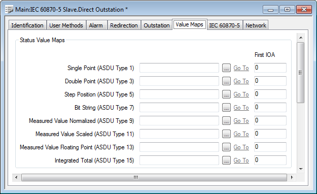Leave the fields blank for any Status Value Map types that are not used by this slave outstation.