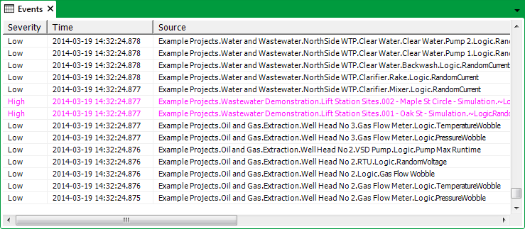 An Events List is displayed. The List shows event messages that have been logged on your system within a specified time period (the Event List Range specified on your User Account (or the Guest User Account if you are not logged onto Geo SCADA Expert)).