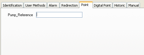 Each point is then configured so that its entry for the Pump_Reference field corresponds to the Pump_Reference number of the pump that the point represents. For example, if a digital input point represents a pump that has the reference number SA-REG1-PUMP1, the point will have SA-REG1-PUMP1 as its entry for the Pump_Reference field on the Point Form.