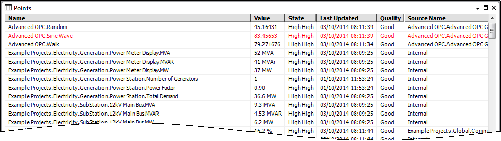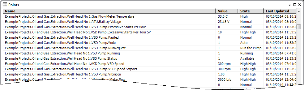 The Queries List is automatically filtered to include only those points that have a State value of ‘HighHigh’.