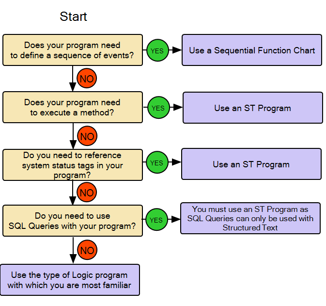 If you have a choice of which Logic program to use, we recommend that you use the Logic program that you find easiest to use. For many engineers, Ladder Diagrams are the easiest type of Logic program to understand. Ladder Diagrams use relay ladder Logic and are similar to traditional PLC programs.