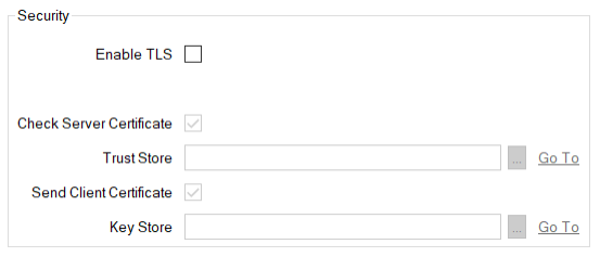 Clear the check box (the default) if the connection between Geo SCADA Expert and the broker is not secured. The rest of the fields within the Security section are 'grayed out' and unavailable for use.