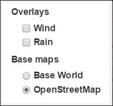 Note that the menu is divided into sections: there is a section for base map layers and a section for overlays.