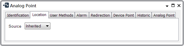 This is the default option for all database items other than new User Accounts and new User Patterns. When you select this option the item inherits the location coordinates from the parent Group or the System group. This allows you to group a set of items that share a single location within a group, for example, an outstation and associated points.