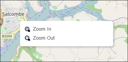 To zoom in and out on a specific location on the map, right-click on the location and Geo SCADA Expert will display the Zoom menu: