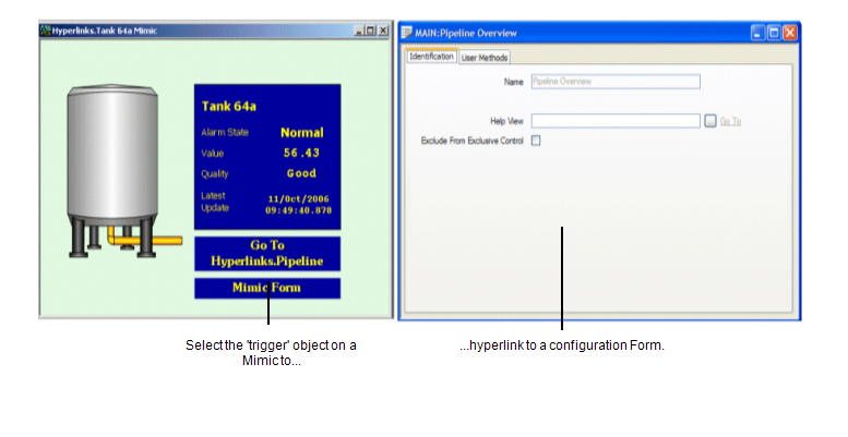 You can create a hyperlink to the configuration Form of any database item, including those items that have graphical displays such as Mimics and Trends.