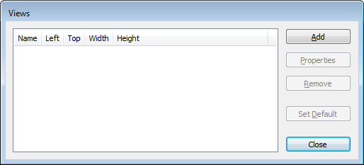 - Select the Add button to add a new View to the list. The View is selected automatically, ready for you to define its name. The View already has the X, Y, W, and H settings (X and Y coordinates for the section of the Mimic and width and height settings for the size of the View) for the area of the Mimic that you magnified in step 2.