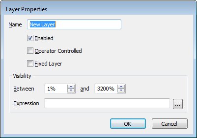 - Use the Visibility settings to define the range of magnification at which the layer is visible. You can also use the Expression setting to associate the layer's visibility with a value in the database or registry.