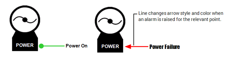 The text that changes from 'Power On' to 'Power Failure' is an animated text box that animates the Value property to show the CurrentStateDesc property of the point.