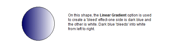 • Linear Gradient—The Linear Gradient option applies a two-color shading effect. One side of the fill is one color and the opposite side is the other color. The colors blend into each other in the middle of the fill, creating a 'bleed' effect.