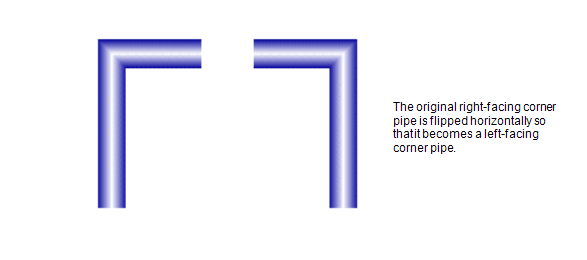 You can flip a Mimic object so that it appears as a mirror image of its original shape. This is useful for converting left-facing objects into right-facing objects and vise-versa. For example, you can use the flip tool to change corner pieces like this:
