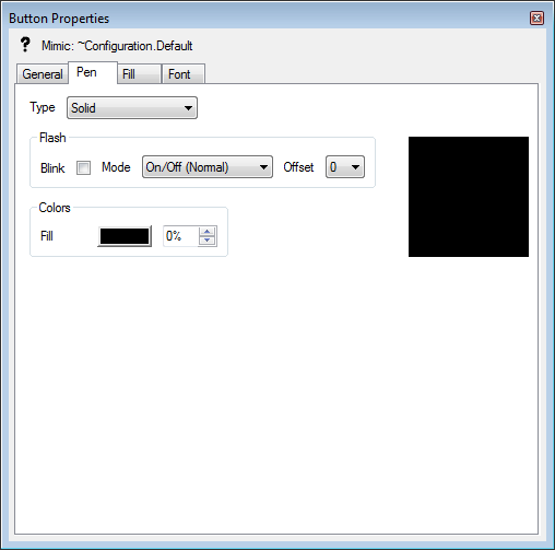 The Pen tab is available on Properties windows that relate to objects with text, such as text boxes and buttons. It contains the settings that allow you to define the shading and colors of the text.