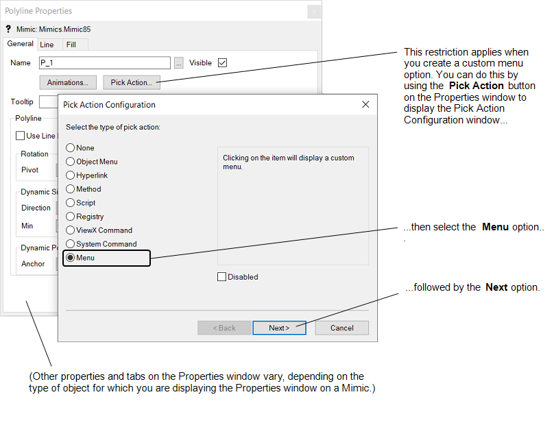 For example, let’s say you have a Mimic that contains six embedded instances of a ‘Pump’ Mimic, and these embedded Mimics are only used as graphical aids (they have no animations). If the Shared with Other Embedded Mimics setting is enabled, it means Geo SCADA Expert can load 1 ‘definition’ of the ‘Pump’ Mimic into memory and then use that single ‘definition’ for the six of the embedded Mimics. This reduces the amount of memory required and so makes performance more efficient. However, if the Shared with Other Embedded Mimics feature is disabled, Geo SCADA Expert has to load six ‘definitions’ of the ‘Pump’ Mimic into memory - one for each embedded instance of the ‘Pump’ Mimic. This requires extra memory and so is less efficient.