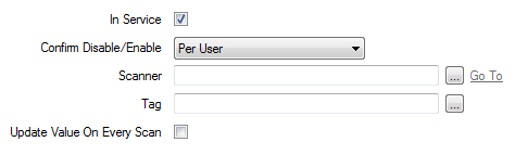 - In Service—Use to specify whether the point is active or inactive (see Placing an Item In Service in the Geo SCADA Expert Guide to Core Configuration).