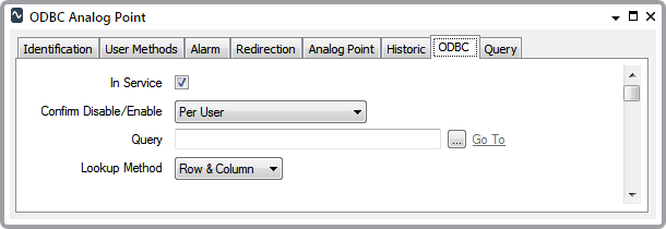 - Query—Specify the ODBC Query with which this point is associated. Use the browse button to display a Reference browse window and select the required Query from the window.