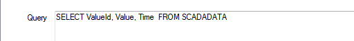 Within Geo SCADA Expert, an ODBC Query is configured to retrieve the ValueId, Value and Time columns of data from the SCADADATA table.
