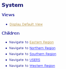 If a Default View is configured for the Root Group on your system, an additional entry is included at the top of the main display area.