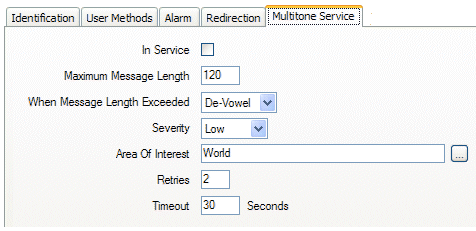 2. Select the <Pager> Service tab, for example, for a Multitone Pager Service, select the Multitone Service tab.