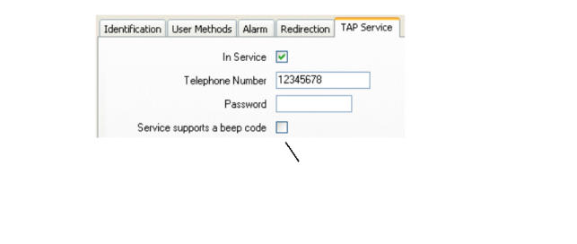 Check or clear the Service supports a beep code check box on the TAP Service tab. - Save the configuration (see Saving Configuration Changes in the Geo SCADA Expert Guide to Core Configuration).