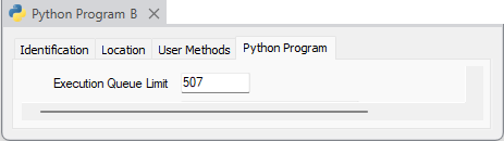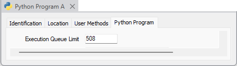 Execution Queue Limit—Each Python program that the server can execute has its own queue limit (see Specify the Execution Queue Limit of a Python Program). Use this property on the server to specify the overall queue limit for all Python programs on the server. This limit takes precedence over the individual execution queue limits that you specify on the configuration form of each Python Program item. As such, if the Execution Queue Limit on the server is reached, it will discard any further 'Run' requests that it receives for any Python programs. This will happen regardless of whether the individual Execution Queue Limit has been reached for those Python programs.