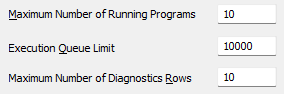 Maximum Number of Running Programs—The server can run several different Python programs at a time. Use this property to specify how many Python programs can run simultaneously on the server. If the server receives further 'Run' requests while this number of Python programs is already running, it will look to queue those requests. It will then run those requests once the number of Python programs that is currently running has dropped below this limit.