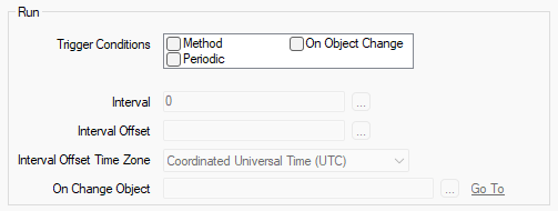The above three Interval fields are only available for use when the Trigger Condition of 'Periodic' is selected.