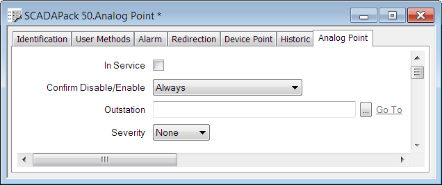 - In Service—Specify whether the point is active or inactive (see Placing an Item In Service in the Geo SCADA Expert Guide to Core Configuration).
