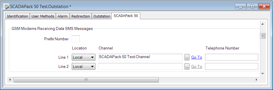 • Line 1 Channel—Use the browse button to display a Channel Reference browse window. Select the SCADAPack 50.Test Channel entry from the window.