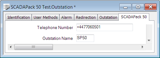 8. Save the property settings (see Saving Configuration Changes in the Geo SCADA Expert Guide to Core Configuration) and close the SCADAPack 50 Test.Outstation window.