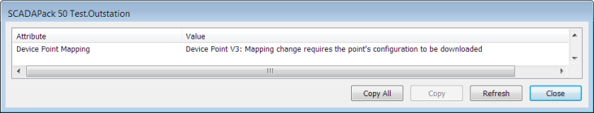 When you make a change to a device point's mapping in Geo SCADA Expert, Geo SCADA Expert will display a Device Point Mapping message in the Outstation Status window. An example is shown in the illustration below:
