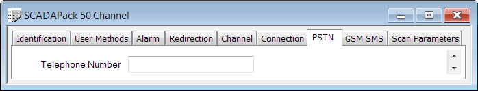 In the Telephone Number field on the PSTN tab, enter the telephone number of the Geo SCADA Expert GSM modem SIM card. Use the required format (for more information, see the modem and SIM card documentation). For example, +447867512345.
