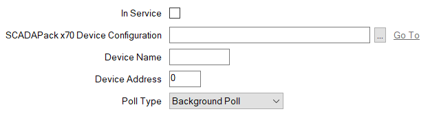 Use the check box to specify whether the DNP3 Remote Device is 'In Service' and included in the downloaded/exported configuration (see The 'In Service' Check Box and Items Taken Out of Service).