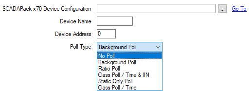 The combo box allows you to select the type of polling that the SCADAPack x70 uses with the DNP3 Remote Device.