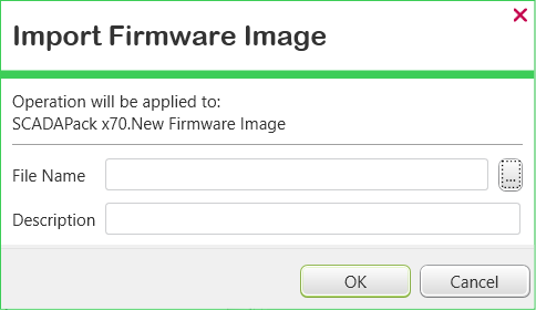 5. In the Description field, enter a brief description of the binary file. Use the description to differentiate between the various firmware image files that might be imported into the Geo SCADA Expert database.
