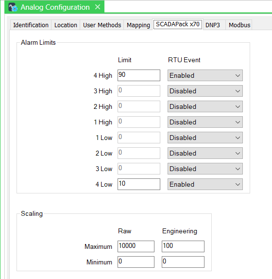 - Scaling: see Specify the SCADAPack x70 Device's Point Scaling.