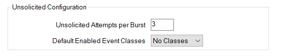 Use the combo box to specify the event classes that are enabled for unsolicited event generation by default (for example when the outstation restarts). This option is primarily used for compatibility with older DNP3 controlling stations.