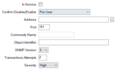 - In Service—Use to specify whether the device is active or inactive (see Placing an Item In Service in the Geo SCADA Expert Guide to Core Configuration).