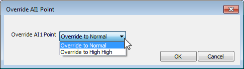 If "Override to High High" is selected (this is Case 1 as it has an Index Number of 1), the script performs an Override of 80 on the point named AI1.