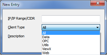 When you Enable and Manage the Client Access Control List you need to define the clients that will be authorized to connect to the Geo SCADA Expert server. Only the clients with the correct IP addresses and correct Client Types will have access to the server.