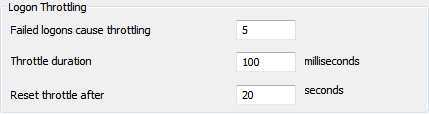 • Failed logons cause throttling—enter the threshold for the number of failed logons that will cause throttling to occur. The default value is 5.