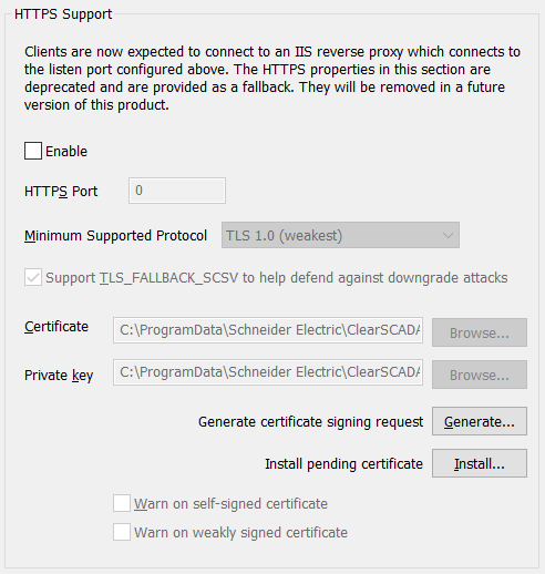 This topic relates to the HTTPS Support properties that are deprecated and provided as a fallback. The HTTPS Support properties will be removed in a future version of this product.