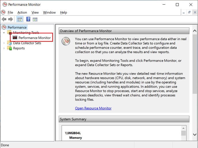 Access the Windows Performance Monitor