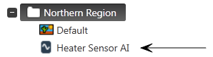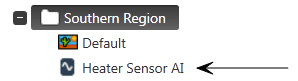 The 'Heat Sensor AI' point is moved from the 'Northern Region' Group into the 'Southern Region' Group. The 'Heat Sensor AI' point will be set to use the 'Bad Weather' alarm limits (depending on the model of outstation, this may not take effect until the outstation's configuration is downloaded).