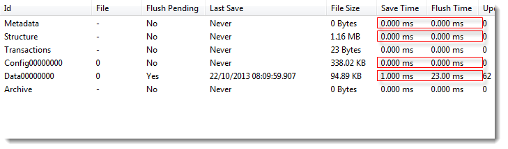 - Look at the Database Save Interval. You need to know the number of seconds that are defined for this setting as you will compare it to the save and flush times for the files.